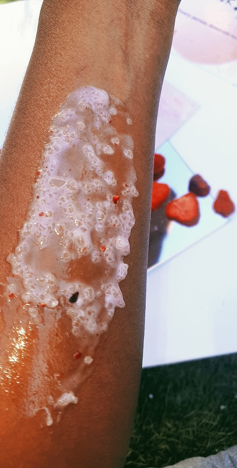 Your skin also deserves to be pampered with a delicious foaming bath. This exquisite foaming bath is made of strawberry, olive oil, sugar scrub, jojoba oil, aloe vera juice, and the sweet scent of watermelon.