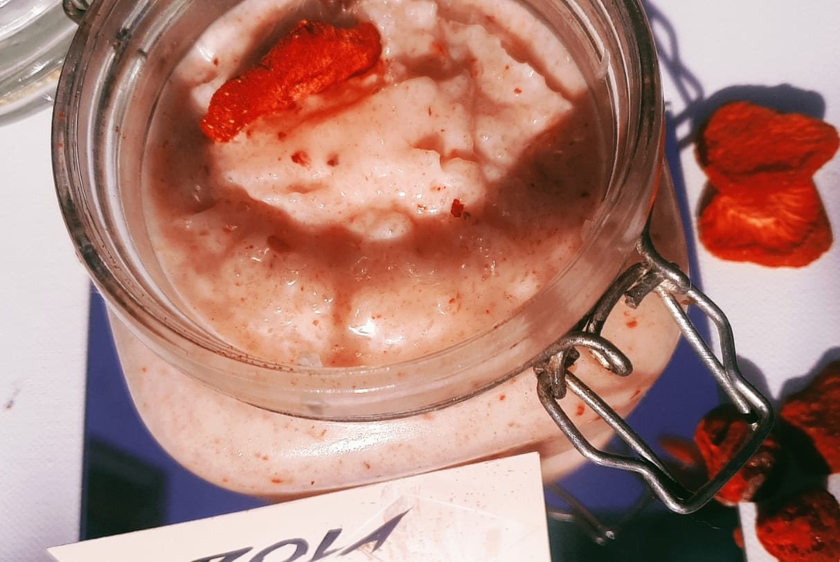 This coarse mixture exfoliates the dry or itchy skin, which can be used twice a week. It also removes blemishes and makes the skin very soft. It's a great mix with skin cream after a bath or a shower.