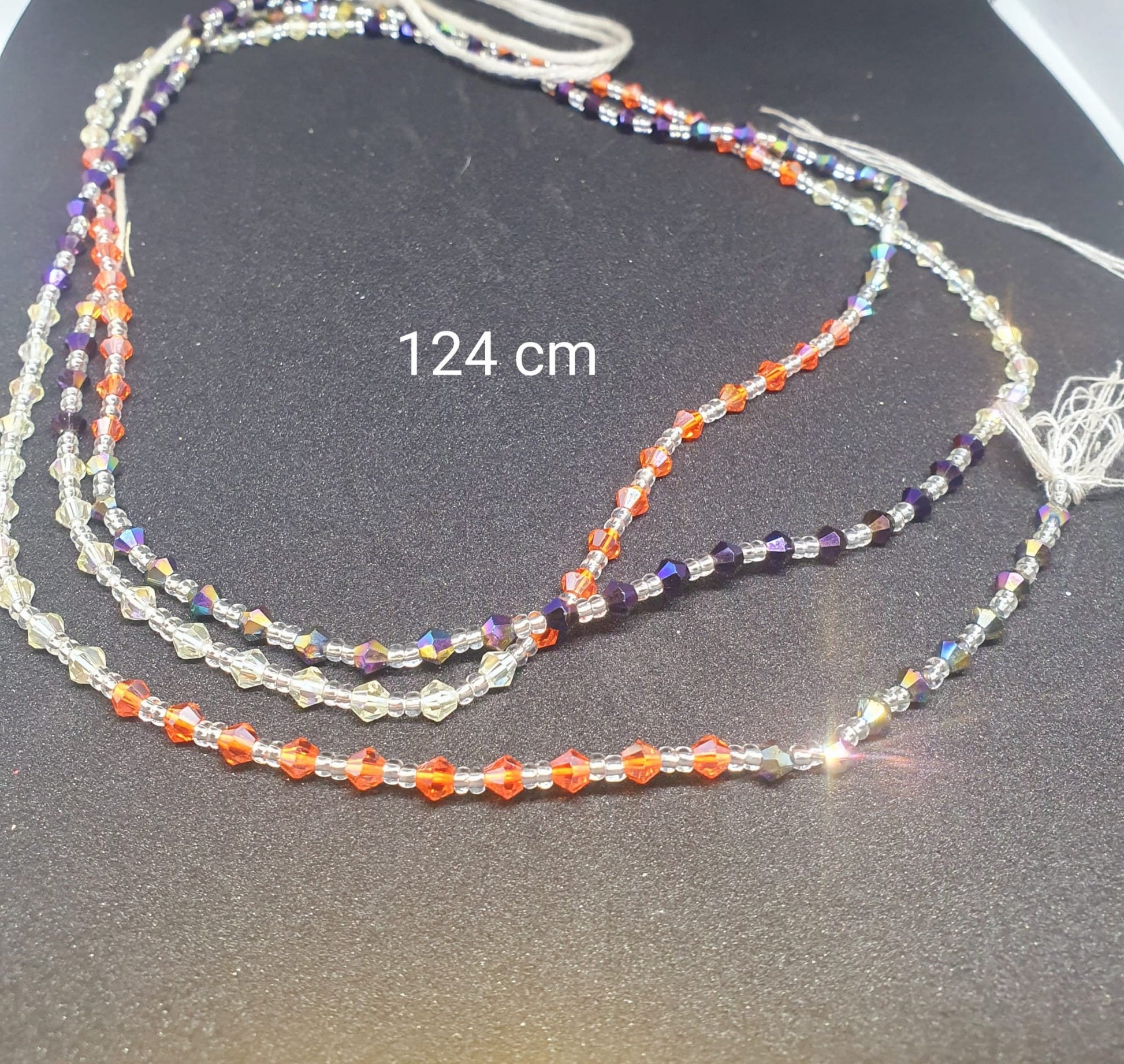 These yellow, orange, and white crystal waist beads carry that same cultural richness. They are symbols of femininity, sensuality, and personal storytelling. In some tribes, waist beads are worn by both male and female children, while for women, they often mark transitions into womanhood. Elderly women may also wear multiple strands to honor their life journey — like grandmothers who wore seven beads to represent seven children.