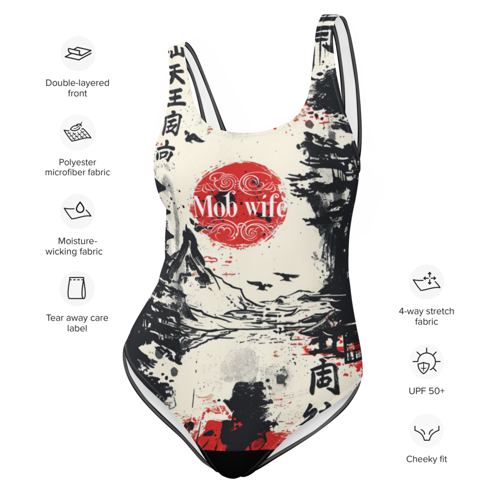 MOB WIFE Asia One-Piece Swimsuit – Bold Retro Glam Swimwear for Women | DOLA Soft