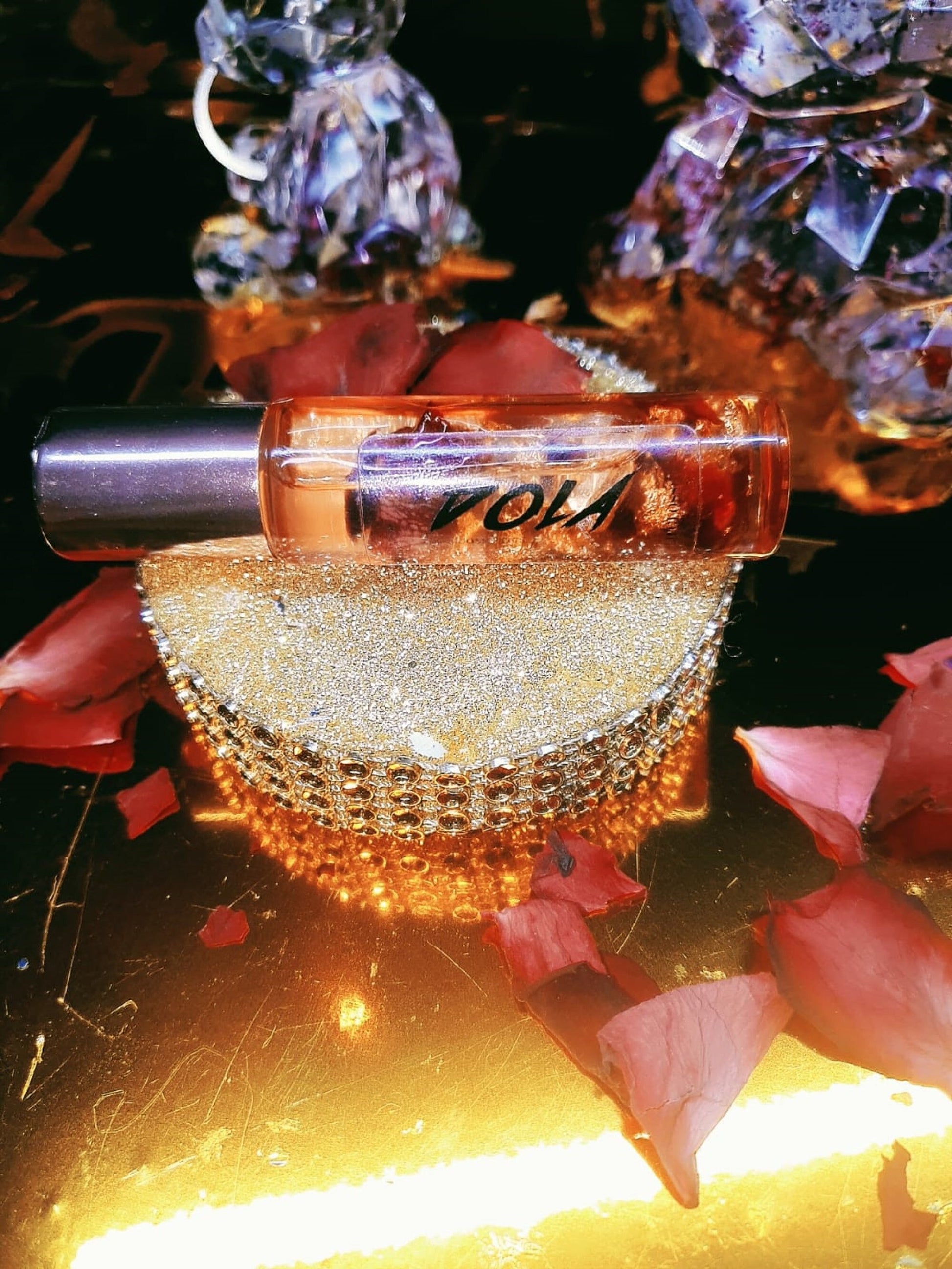 Transparent Lip Oil with Dry Rose Petals and Gold Sheet Flakes by DOLA